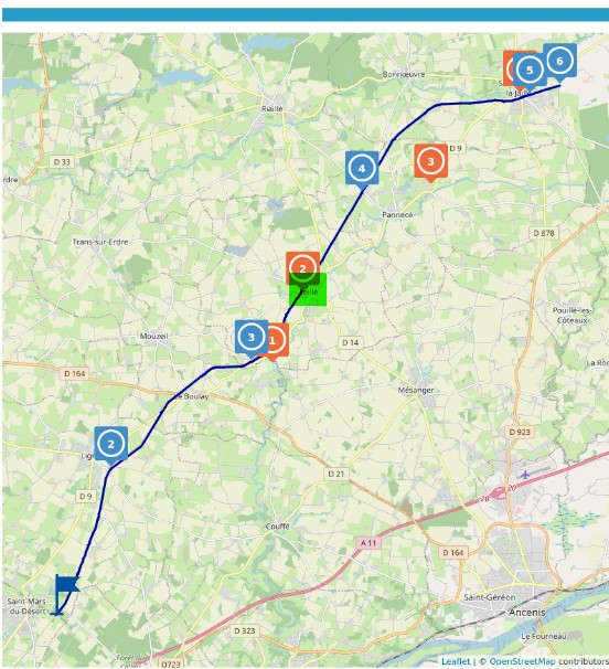 La voie verte sur laquelle circulent les randonneurs, à pied, à cheval ou en vélo, occupe le site d’une ancienne voie ferrée sur 36 km. Cette ligne de chemin de fer, construite à partir de 1885, reliait Nantes à Paris et était, contrairement à la ligne de Tours à Nantes, à l’abri des crues.